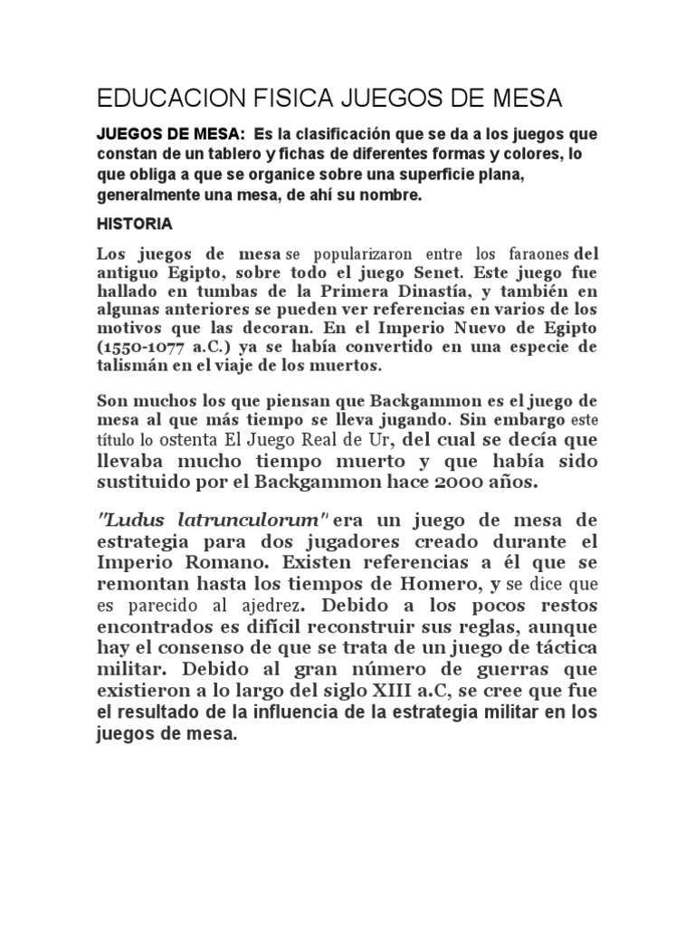 JUEGOS DE MESA: Es la clasificación que se da a los juegos que
