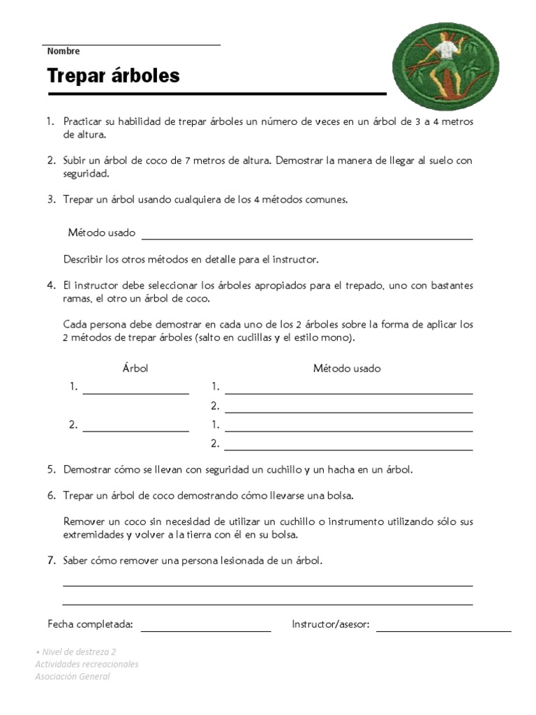 1. Practicar su habilidad de trepar árboles un número de veces en un árbol de 3 a 4 metros