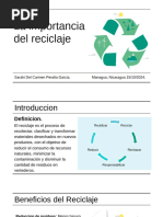 de recursos naturales, etc. El reciclar nos ayuda, además, a disminuir la contaminación. Ayuda a