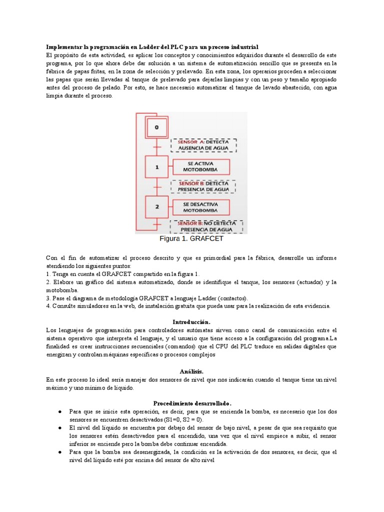 programa, por lo que ahora debe dar solución a un sistema de automatización sencillo que se presenta en la