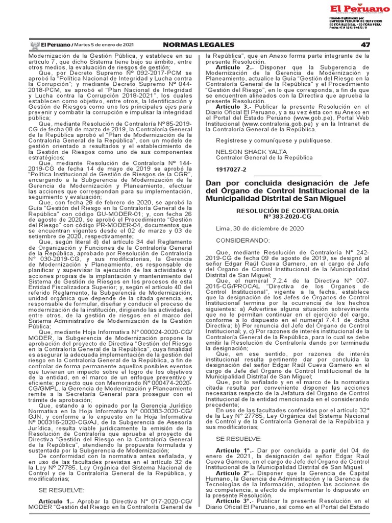 peruano ([Link]), Portal Web Institucional Designan Jefe del Órgano de Control