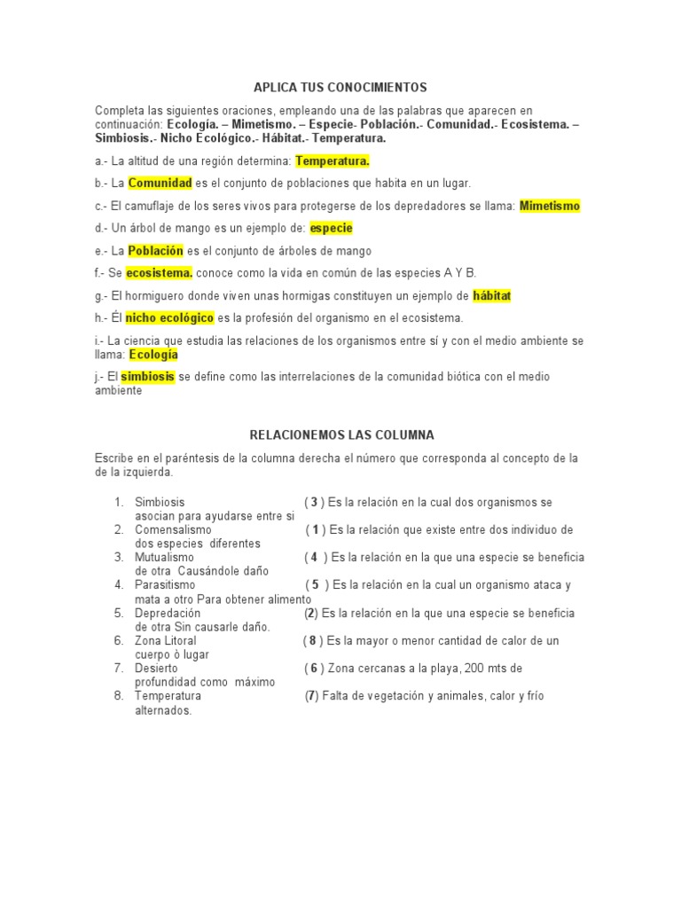 continuación: Ecología. – Mimetismo. – Especie- Población.- Comunidad.- Ecosistema. –