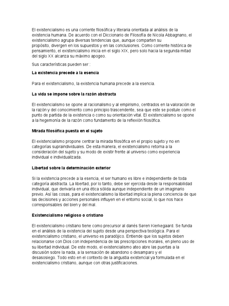 existencia humana. De acuerdo con el Diccionario de Filosofía de Nicola Abbagnano, el