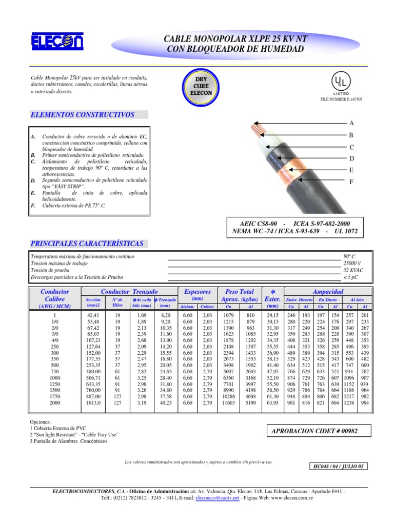 Conductor Conductor Trenzado Espesores Peso Total φ Ampacidad