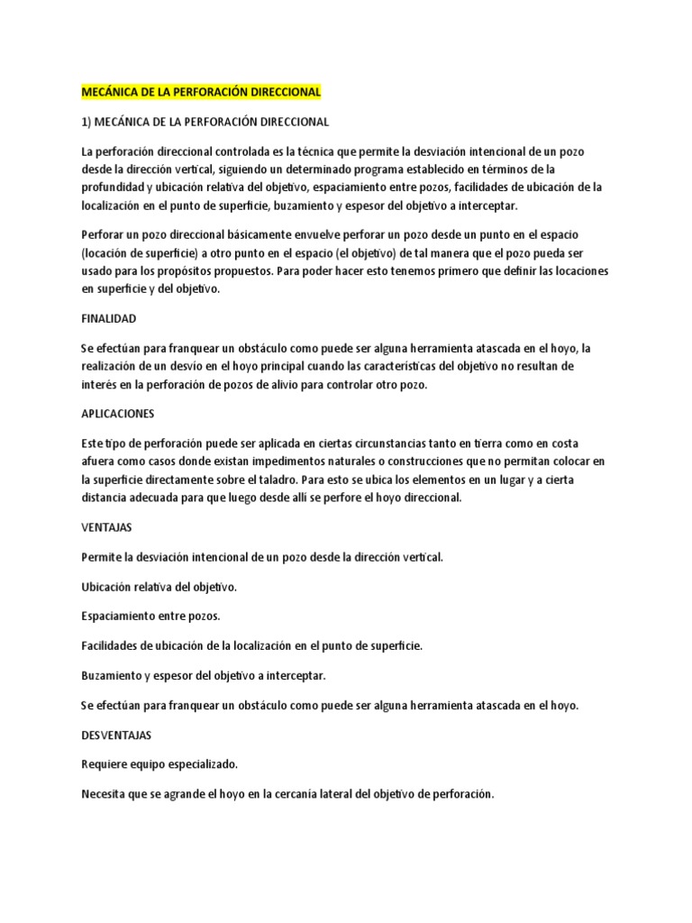 1) MECÁNICA DE LA PERFORACIÓN DIRECCIONAL