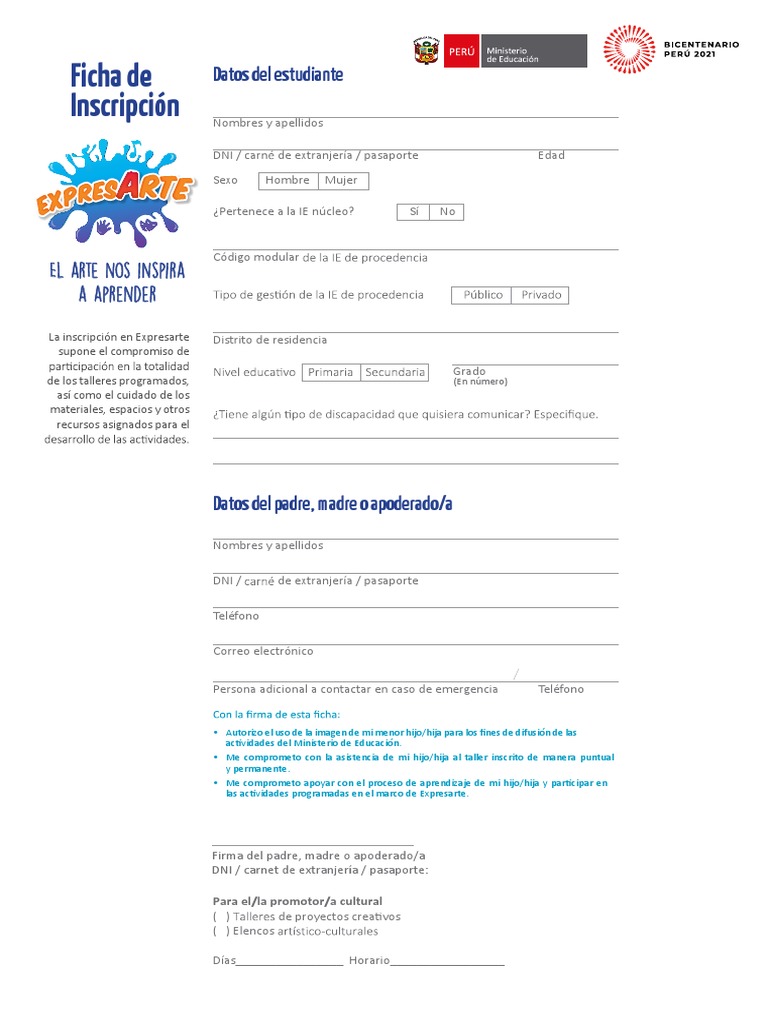 • Me comprometo con la asistencia de mi hijo/hija al taller inscrito de manera puntual