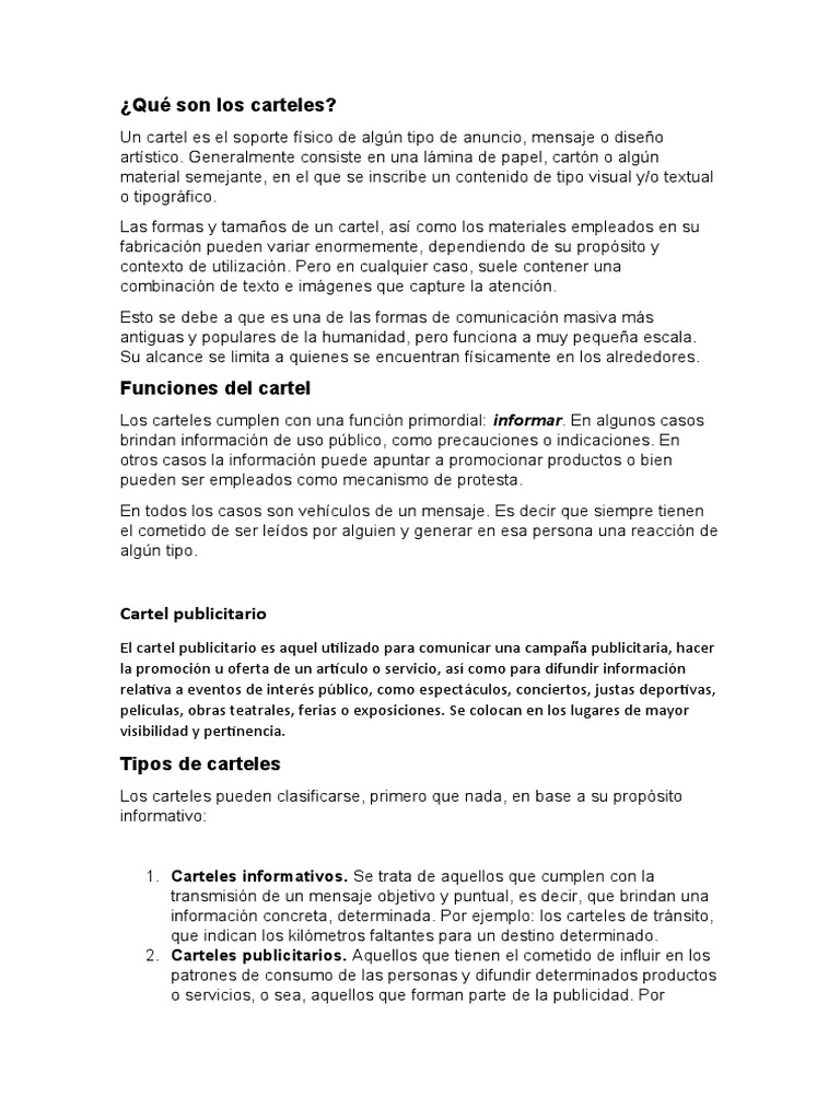 1. Carteles informativos. Se trata de aquellos que cumplen con la