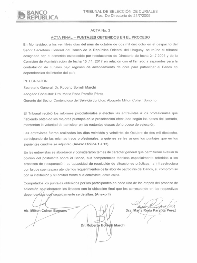 ROJO.=, |BANCO TRIBUNAL DE SELECCION DE CURIALES