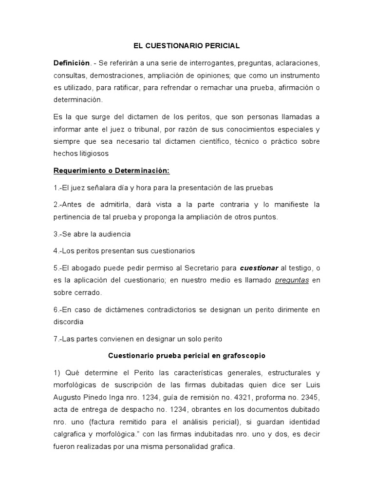 Cuestionario Prueba Pericial.