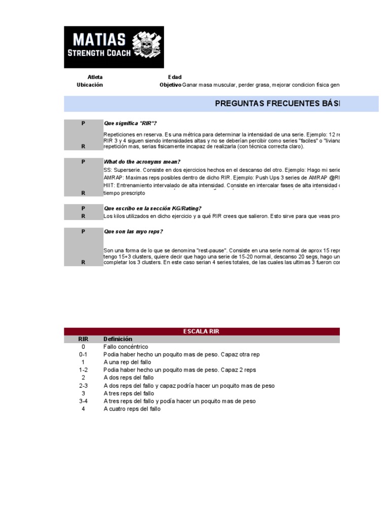 mplo: 12 reps @RIR 3 significa que podrias hacer 15 reps llegando al fallo, pero paras en 12. Aclaración: