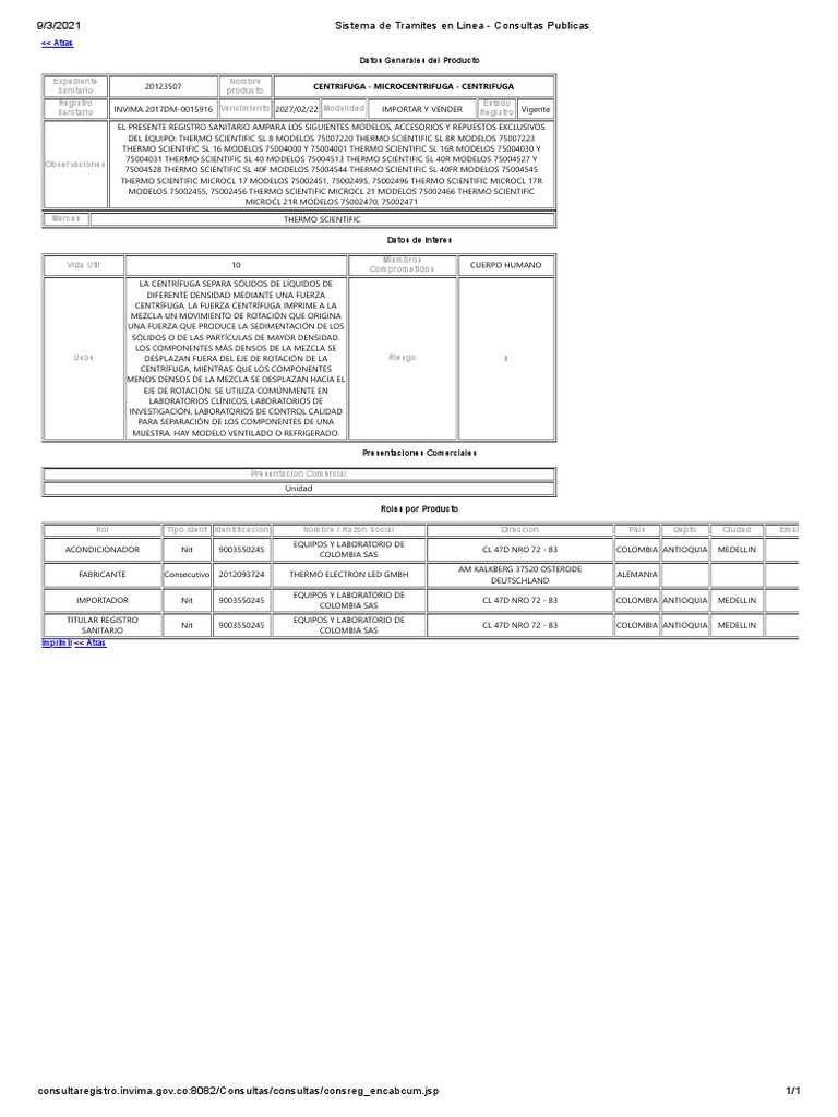 FABRICANTE Consecutivo 2012093724 THERMO ELECTRON LED GMBH ALEMANIA