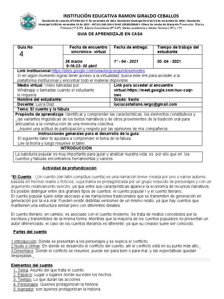 Tema: El cuento y la fábula