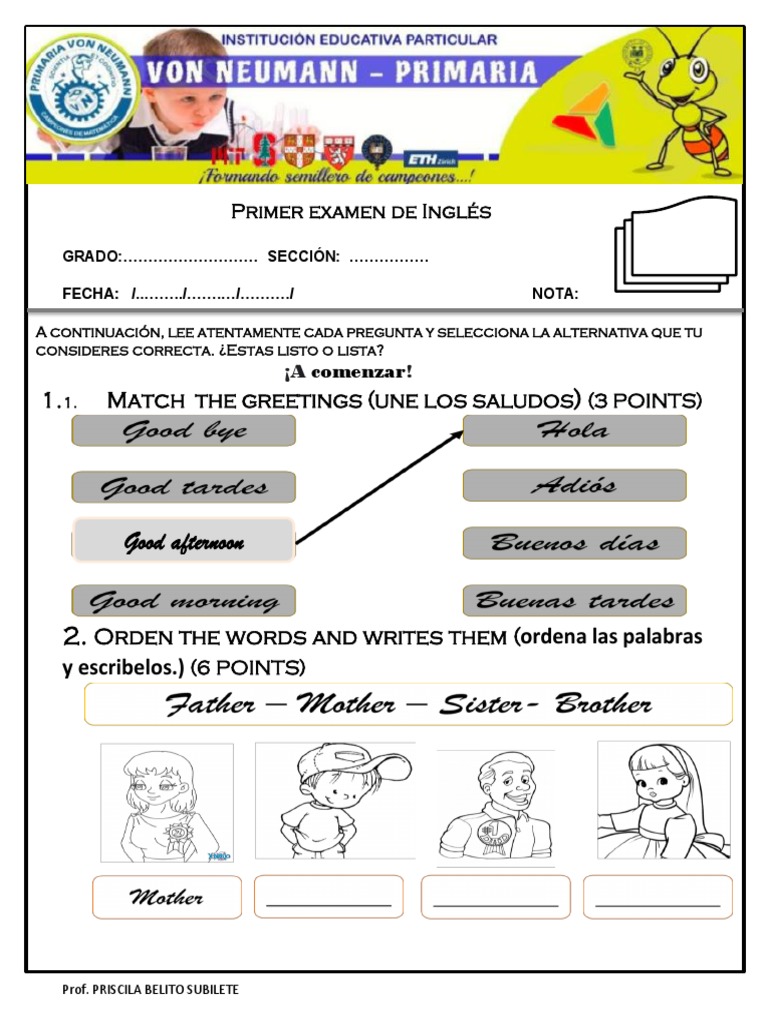 Primer examen de Inglés