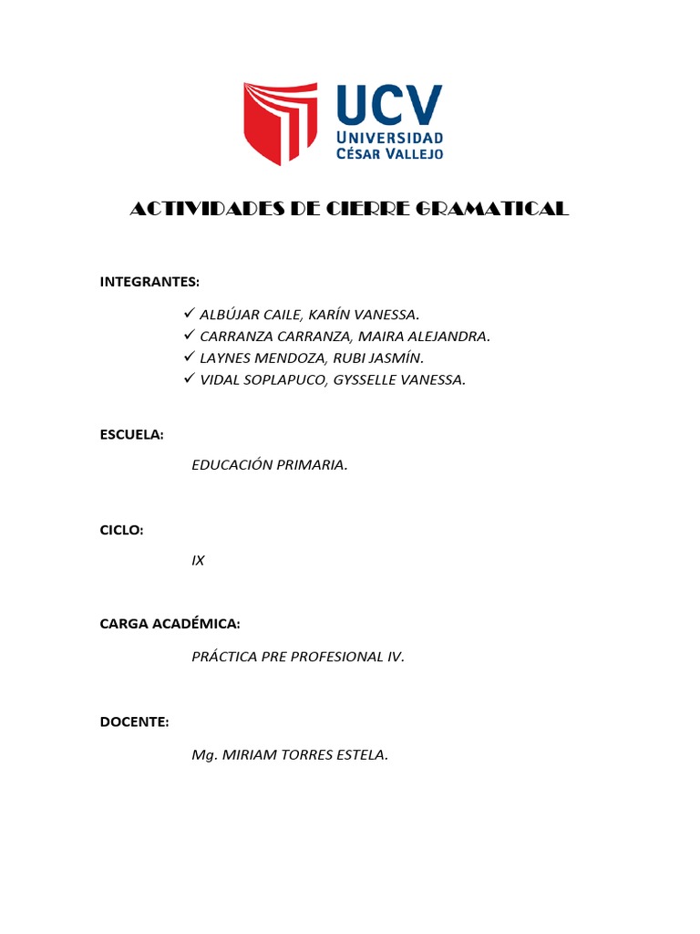 ACTIVIDADES DE CIERRE GRAMATICAL