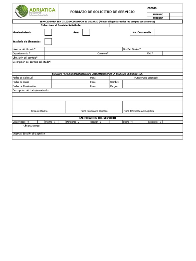 ESPACIO PARA SER DILIGENCIADO POR EL USUARIO (*Favor diligenciar todos los campos con asterisco)