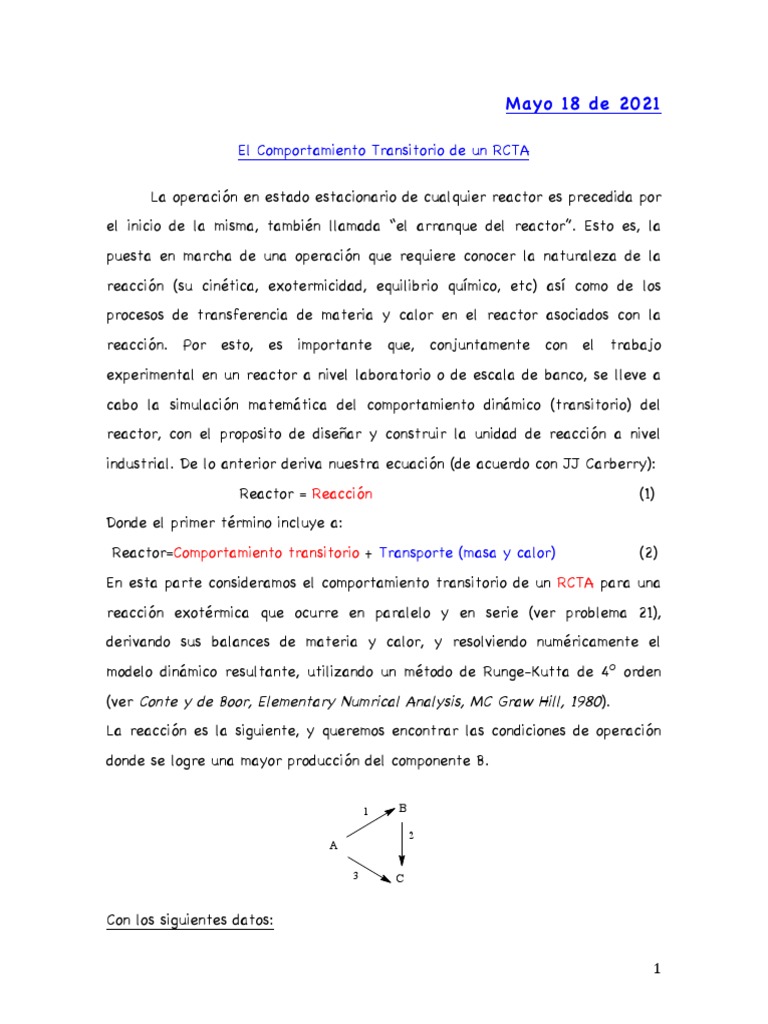 Reactor=Comportamiento transitorio + Transporte (masa y calor) (2)