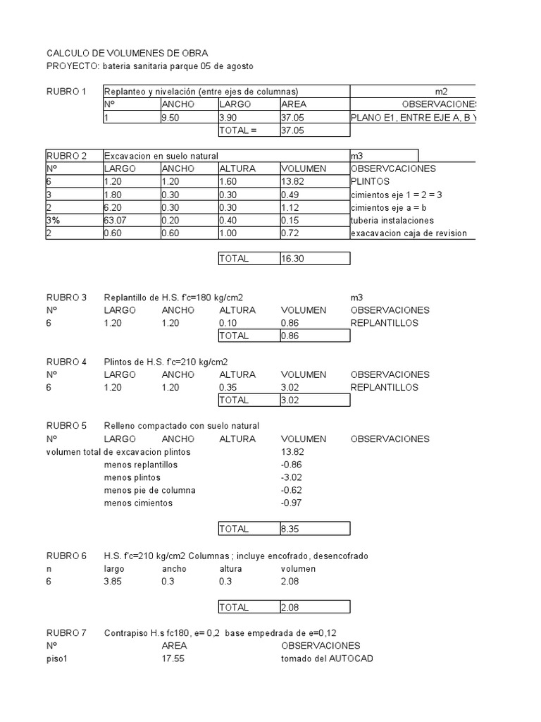 RUBRO 1 Replanteo y nivelación (entre ejes de columnas) m2