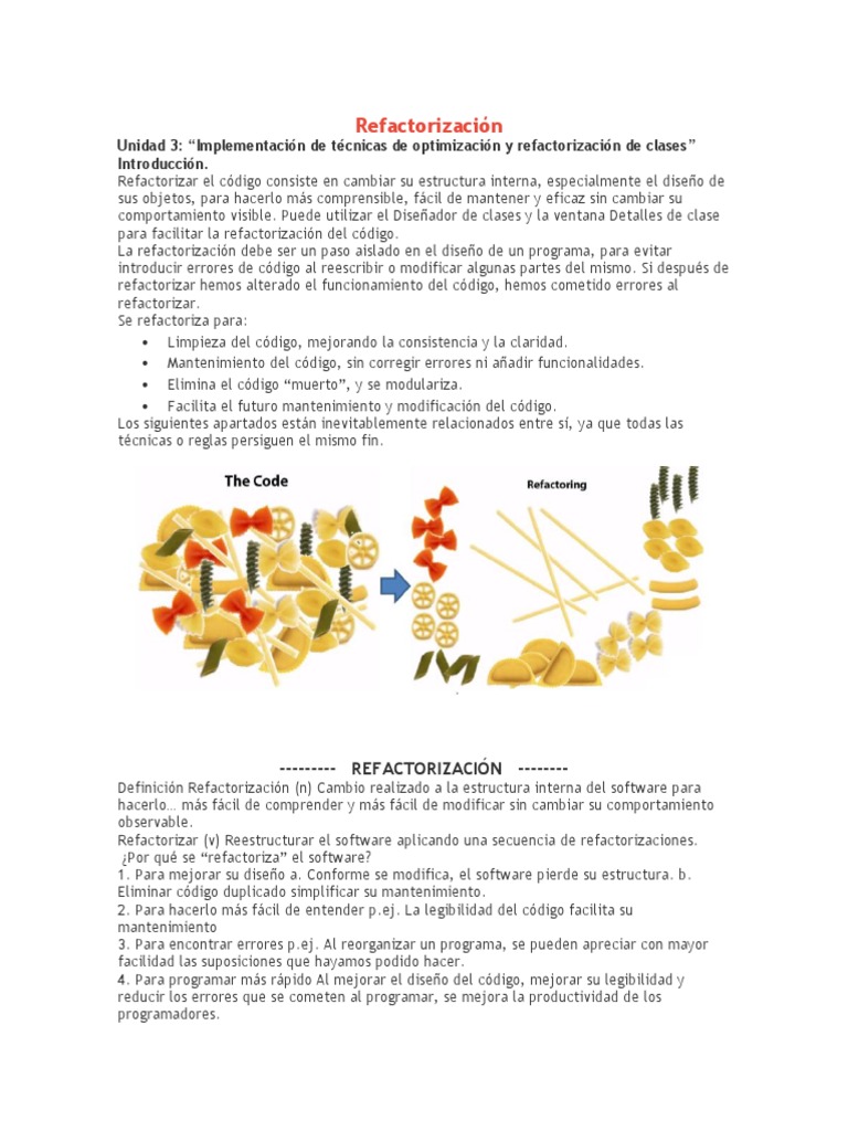 Refactorizar el código consiste en cambiar su estructura interna, especialmente el diseño de