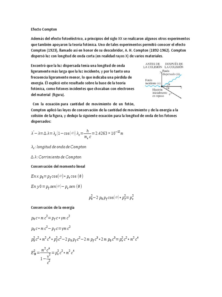 colisión de la figura, y dedujo la siguiente ecuación para la longitud de onda de los fotones