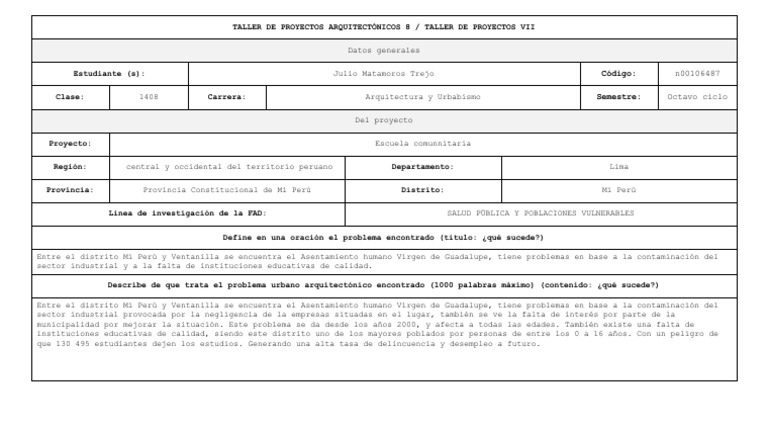TALLER DE PROYECTOS ARQUITECTÓNICOS 8 / TALLER DE PROYECTOS VII