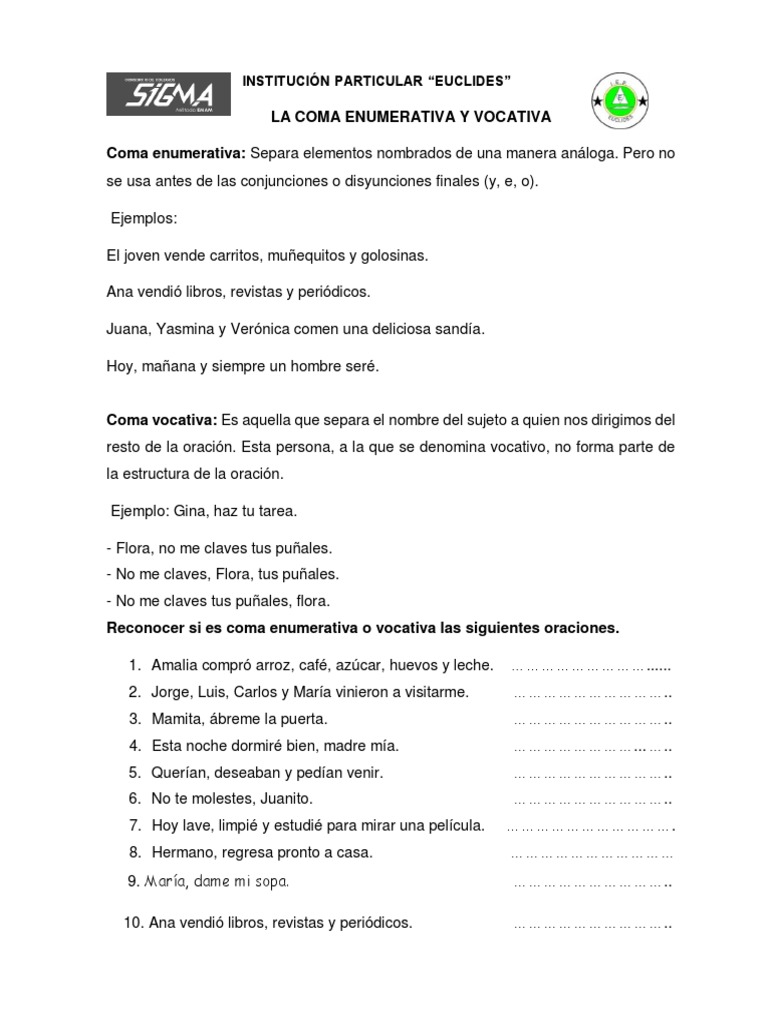Reconocer si es coma enumerativa o vocativa las siguientes oraciones.