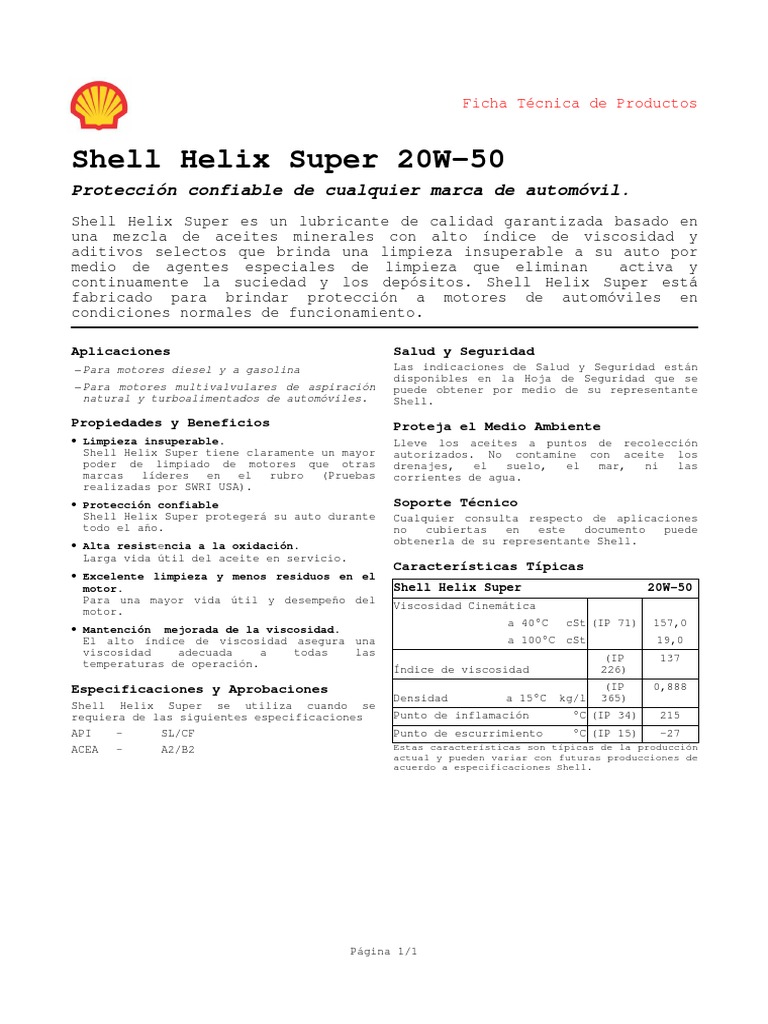 Shell Helix Super es un lubricante de calidad garantizada basado en