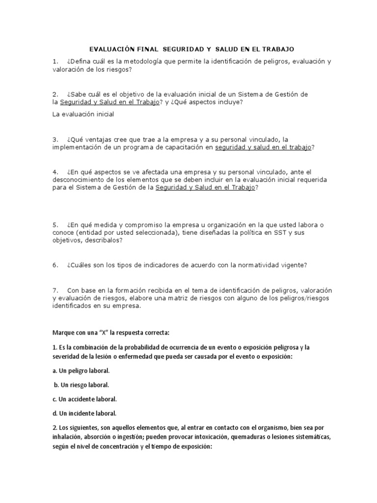 1. ¿Defina cuál es la metodología que permite la identificación de peligros, evaluación y