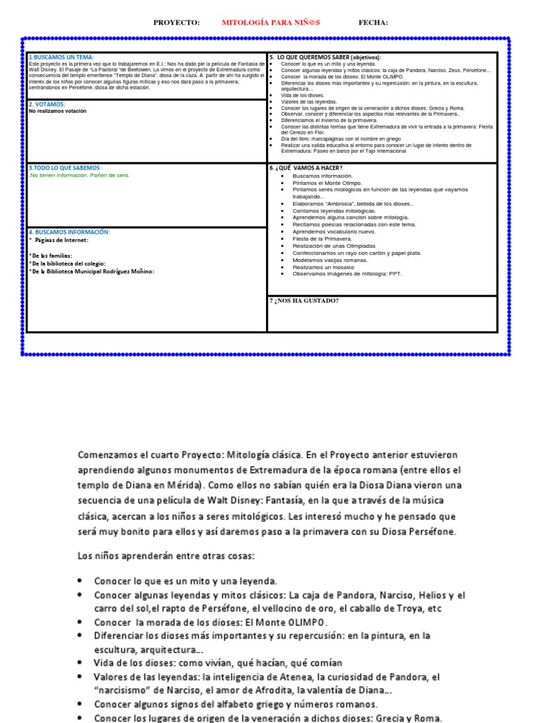 PROYECTO: MITOLOGÍA PARA NIÑ@S FECHA: