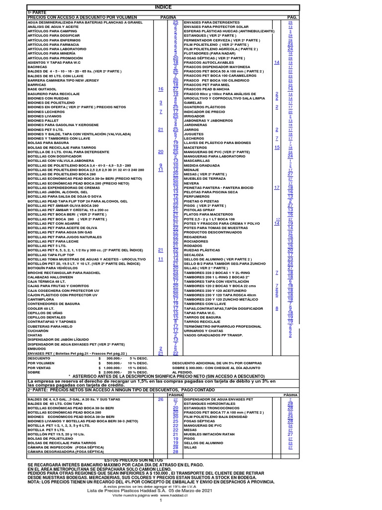 Lista de Precios Plásticos Haddad
