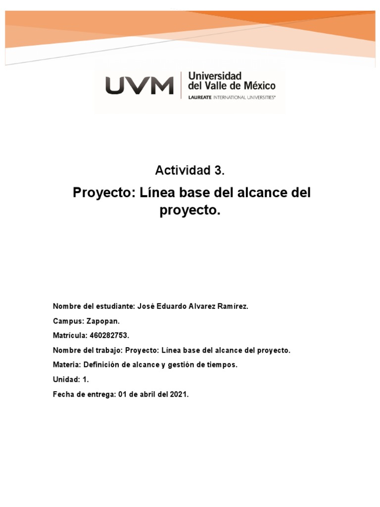Nombre del trabajo: Proyecto: Línea base del alcance del proyecto.