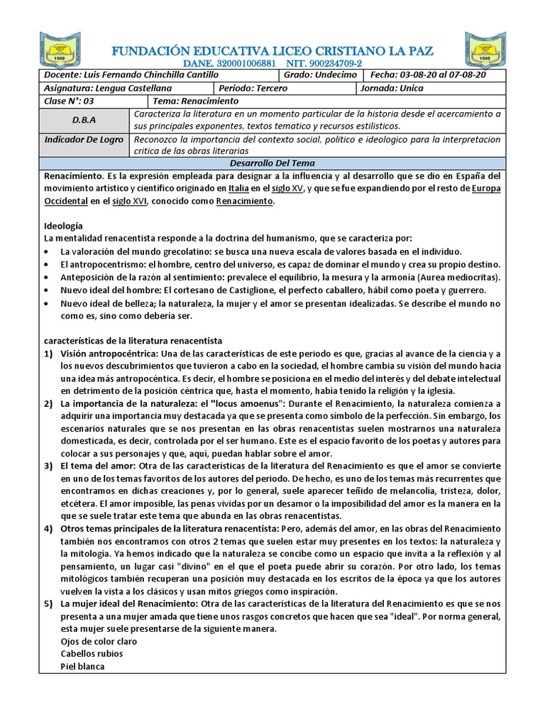 Docente: Luis Fernando Chinchilla Cantillo Grado: Undecimo Fecha: 03-08-20 al 07-08-20