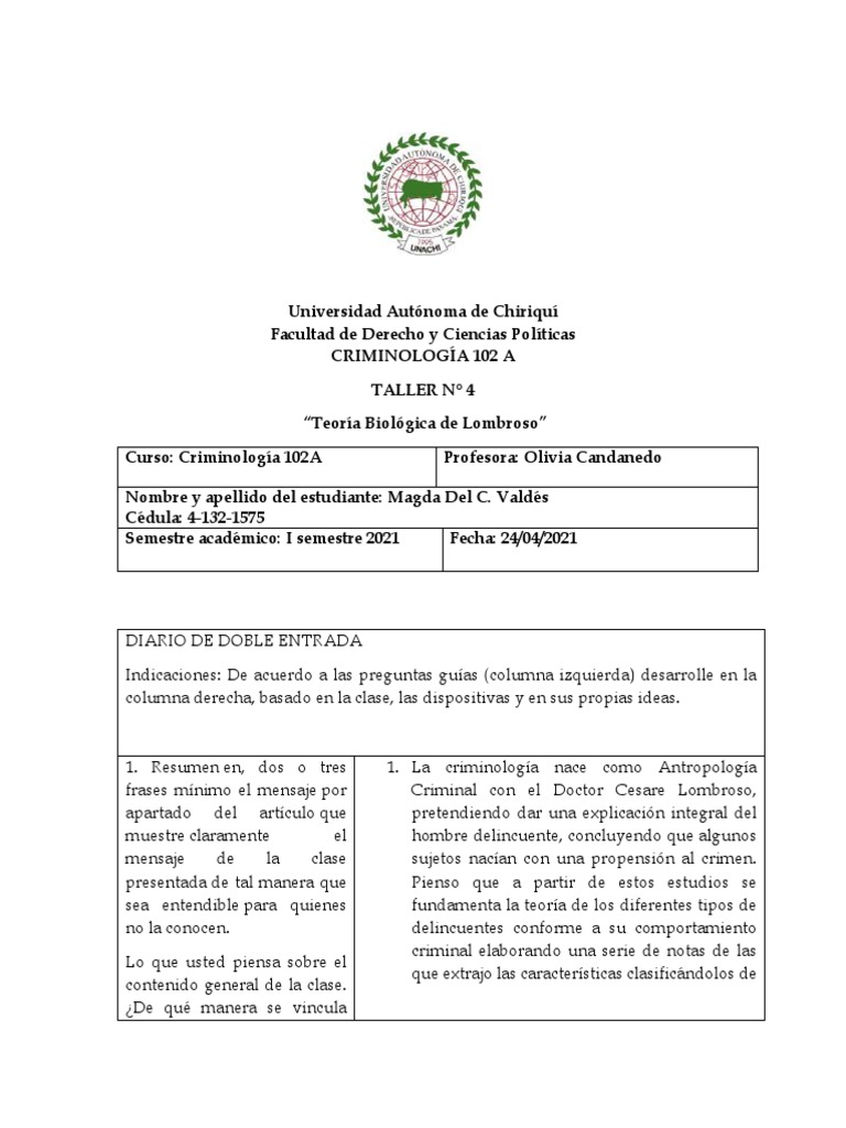 Curso: Criminología 102A Profesora: Olivia Candanedo