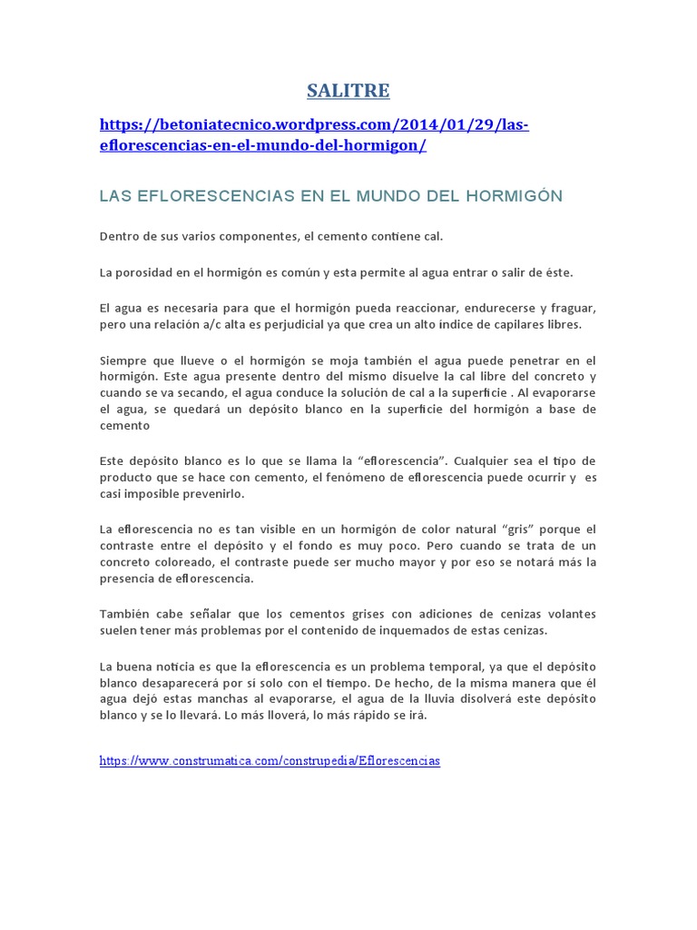 Se denominan Eflorescencias a los cristales de sales, generalmente de color blanco,