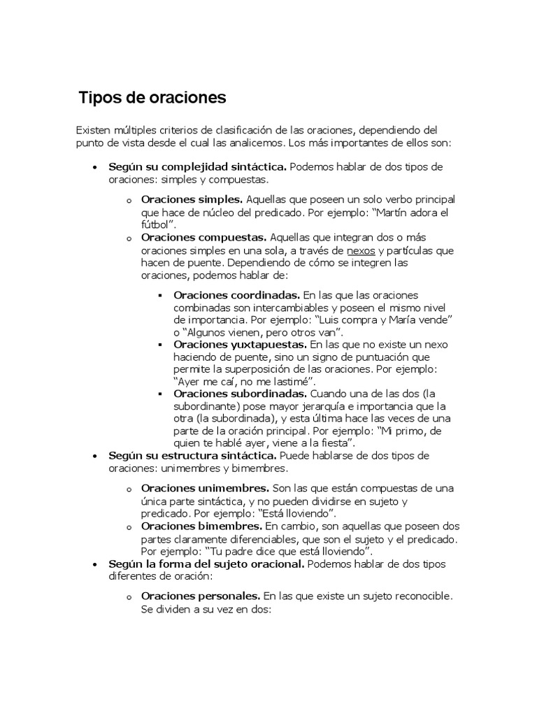 Existen múltiples criterios de clasificación de las oraciones, dependiendo del