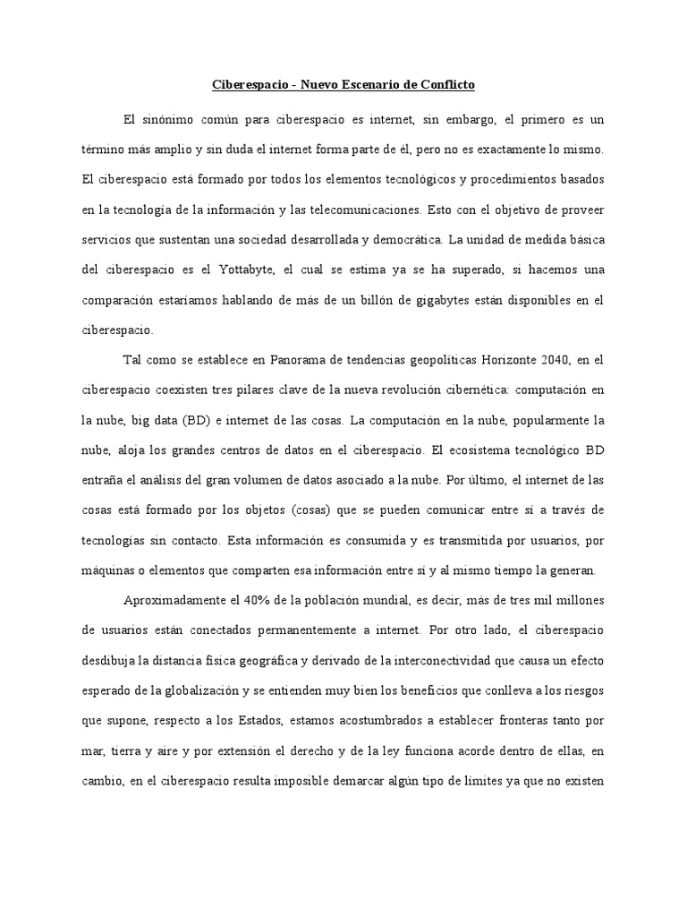 nuevo dominio de enfrentamiento. Aunque el ciberespacio es un dominio hecho por el