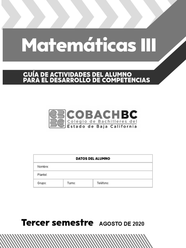 100 MATEMÁTICAS III Guía de actividades del alumno para el desarrollo de competencias