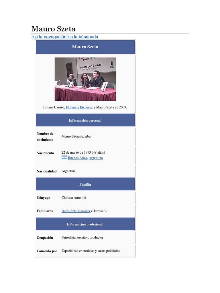 1. ↑ Saltar a:a b c d «Mauro Szeta (periodista)». [Link]. Consultado el 29 de octubre de