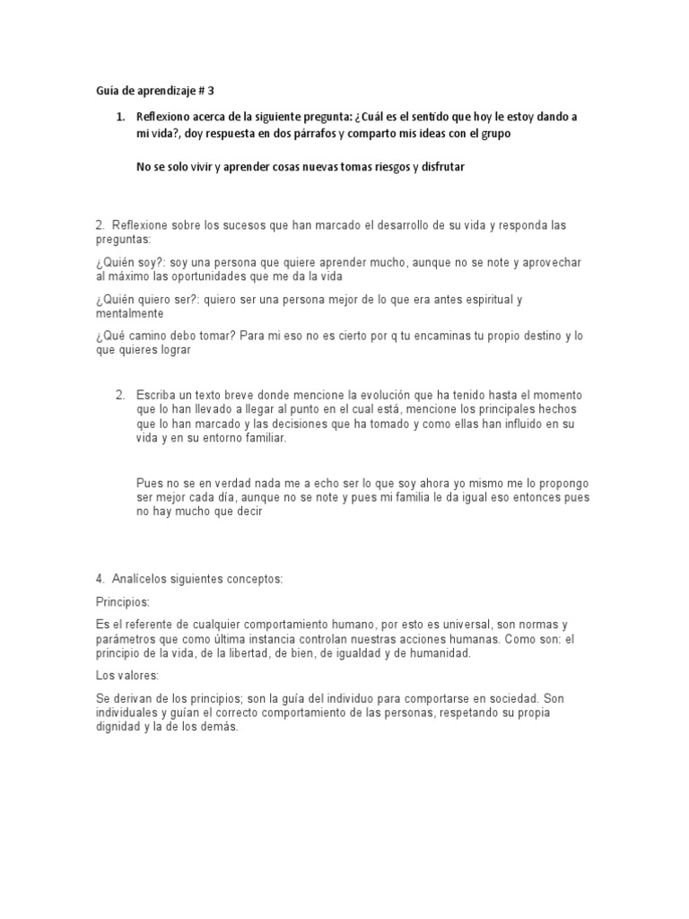 No puedo responder y no tengo valores fundamentales y lo del proyecto de vida es personal
