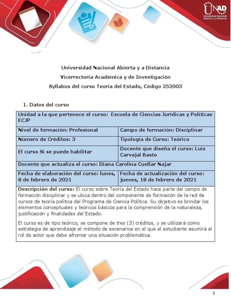 Syllabus del curso Teoría del Estado, Código 252003