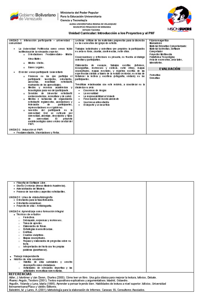 Unidad Curricular: Introducción a los Proyectos y al PNF