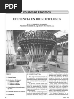 c) Hidrociclones para tamaños finos.