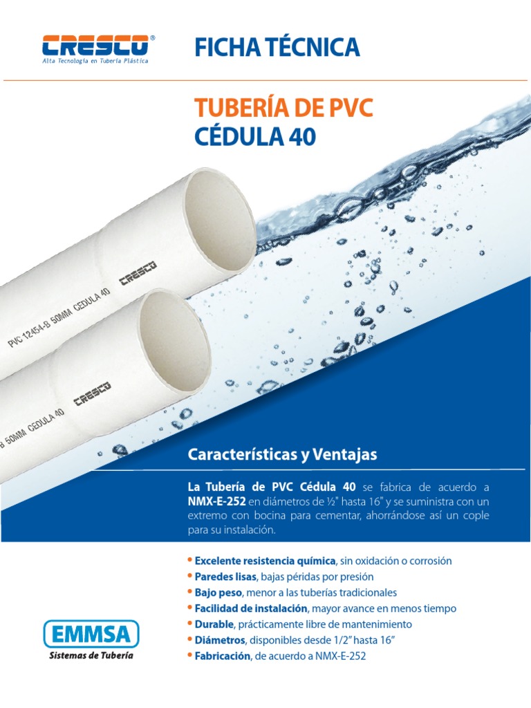 La Tubería de PVC Cédula 40 se fabrica de acuerdo a