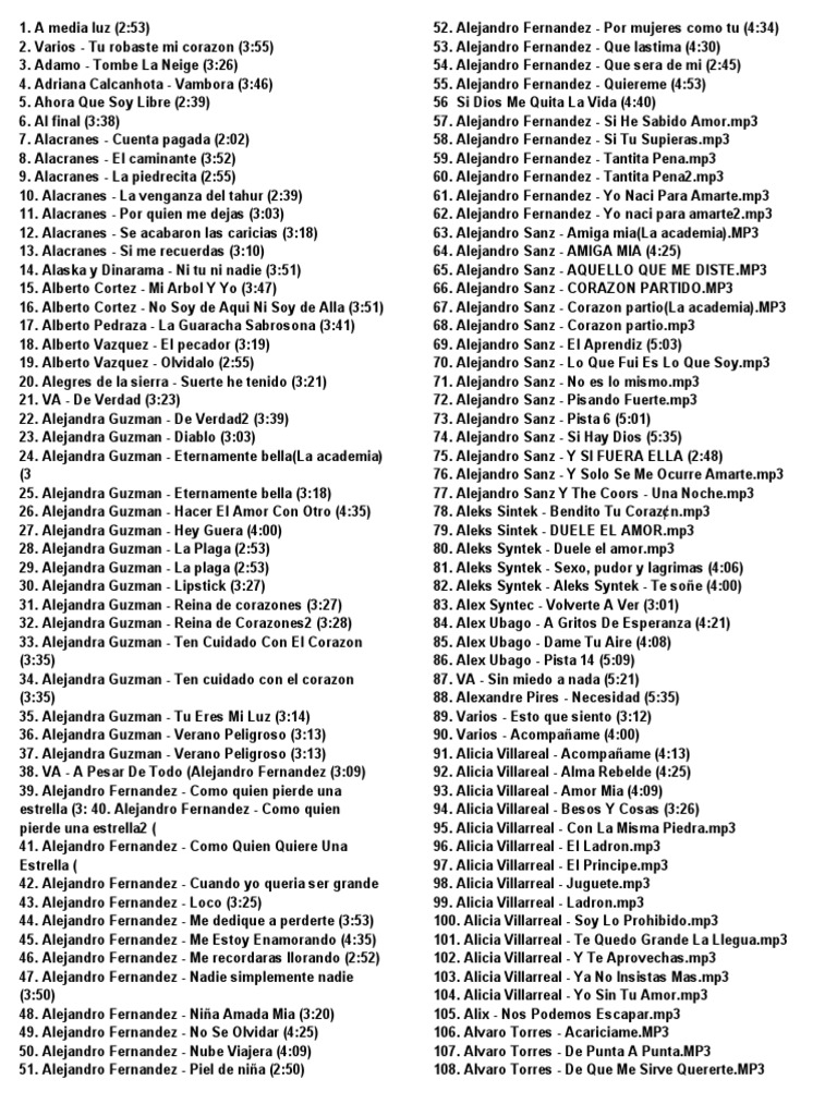 11. Alacranes - Por quien me dejas (3:03) 62. Alejandro Fernandez - Yo naci para amarte2.mp3