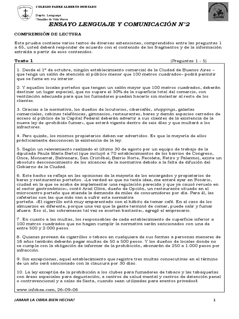 Esta prueba contiene varios textos de diversas extensiones, comprendidos entre las preguntas 1