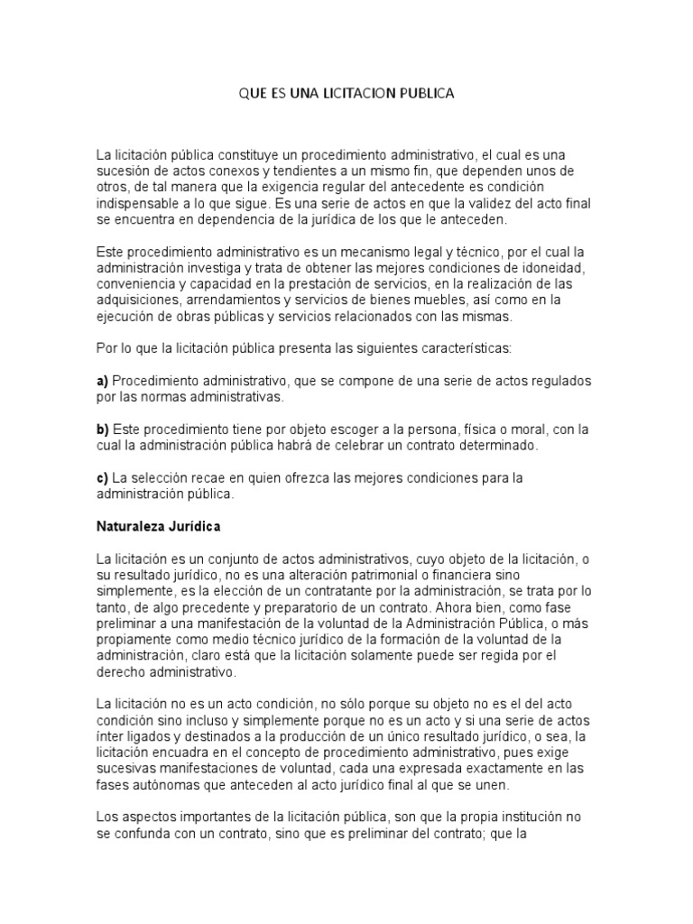 La licitación es un conjunto de actos administrativos, cuyo objeto de la licitación, o
