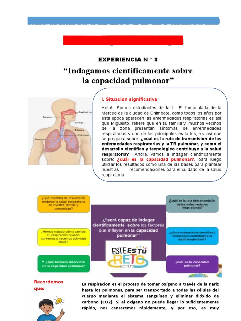 Recordemos La respiración es el proceso de tomar oxígeno a través de la nariz