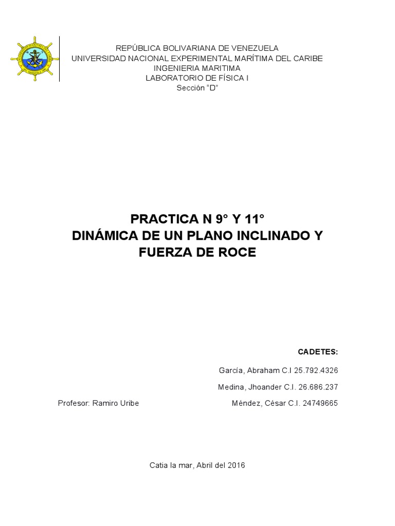 roce en un plano inclinado.