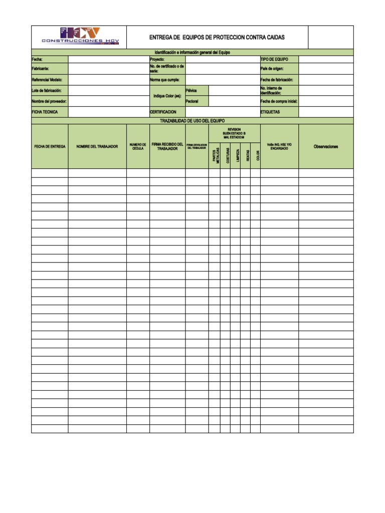 FECHA DE ENTREGA NOMBRE DEL TRABAJADOR CEDULA TRABAJADOR DEL TRABAJADOR ENCARGADO Observaciones