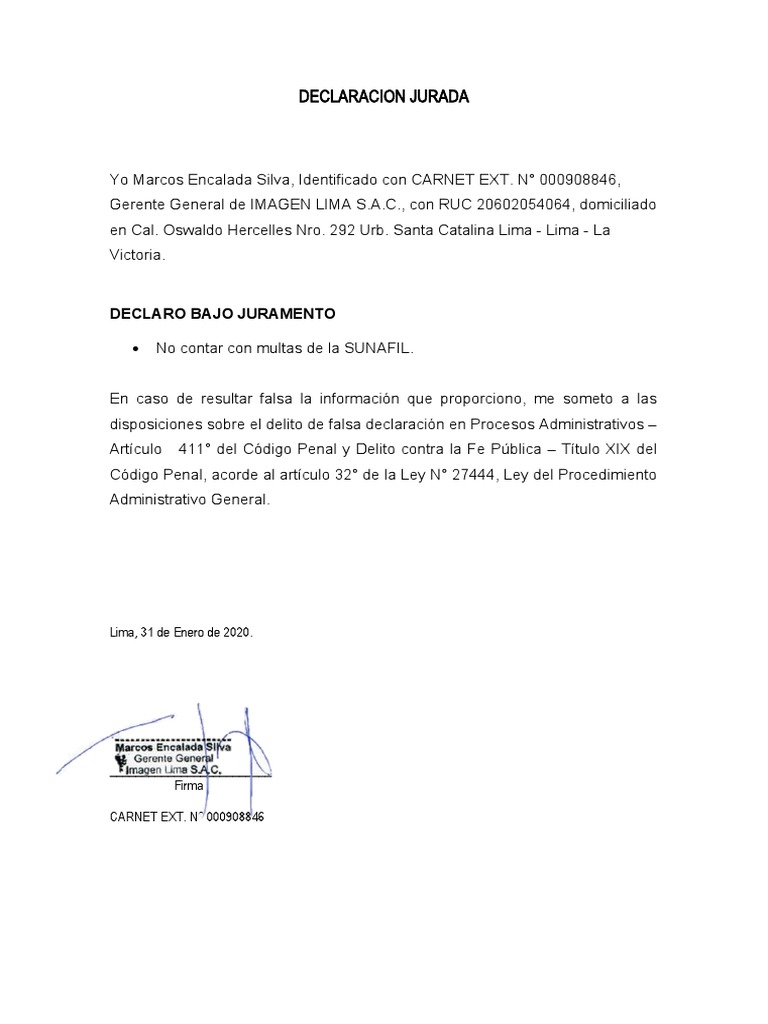 Gerente General de IMAGEN LIMA S.A.C., con RUC 20602054064, domiciliado
