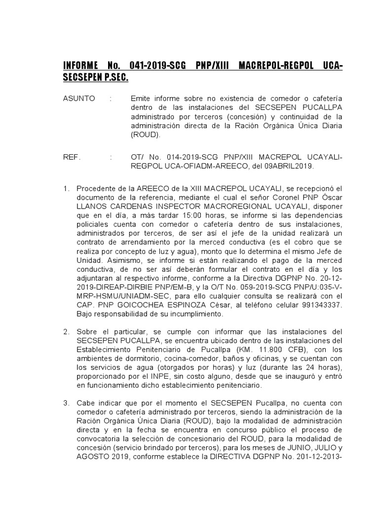 INFORME No. 040-2019-SCG PNP/XIII MACREPOL-REGPOL UCA-